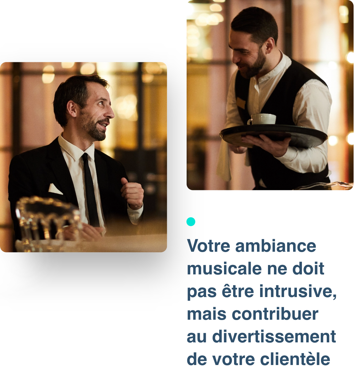 Les playlists proposées par les leaders du marché ne sont pas adaptées aux réalités de votre métier. Répétitives et entêtantes, pour vous comme pour vos clients, elles ne peuvent s’accorder avec précision à la personnalité et aux caractéristiques de votre établissement.